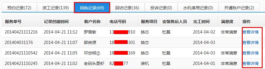 第五步:点击标签页中的“回执记录”,可以查看已做过回执的客户回执信息,如下图;