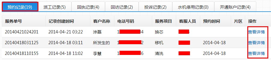 第三步:点击标签页中的“约记录”,可以查看已做过预约的客户预约信息,如下图;