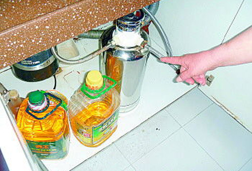 “我以为是冲水马桶一直在滴水,回到家才发现,厨房里的用具都挪了位,净水器的接头也凭空飞走了。”刘女士告诉记者,她赶回家和物业公司的工作人员一起查看漏水原因时才发现,漏水的根源居然是刚买仨月的净水器“爆炸”了。